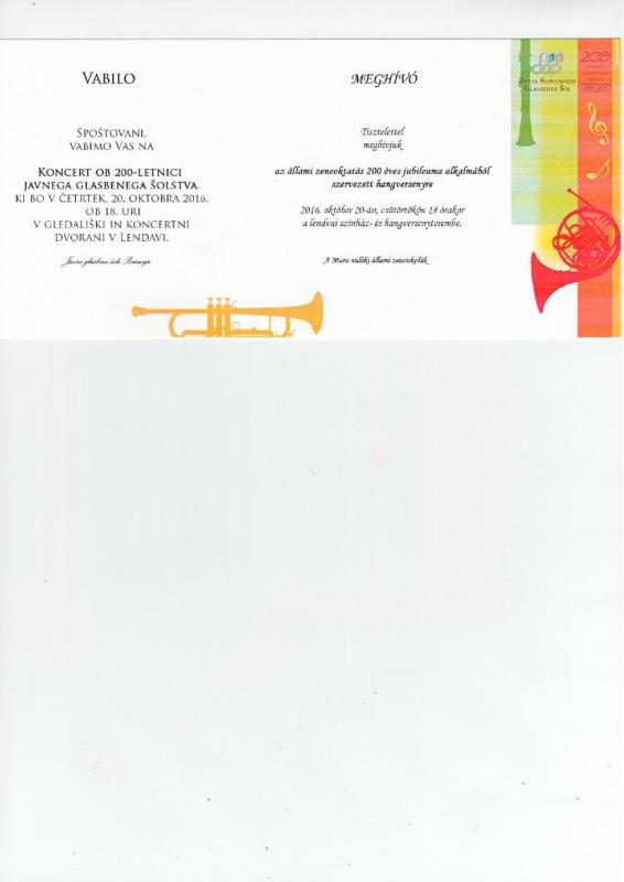 Az állami zeneoktatás 200 éves jubileuma alkalmából szervezett hangverseny 20.10.2016, 18:00 - Lendva, Lendvai Színház- és Hangversenyterem